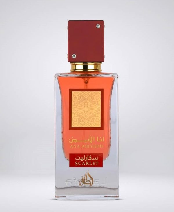 Ana Abiyedh Scarlet by Lattafa is an alluring fragrance that commands attention with its rich and sensual blend. It opens with saffron and bergamot — bright yet mysterious — leading into a luxurious heart of amberwood, praline, and musk. The base settles into a creamy vanilla and oud accord that’s both comforting and powerfully elegant.